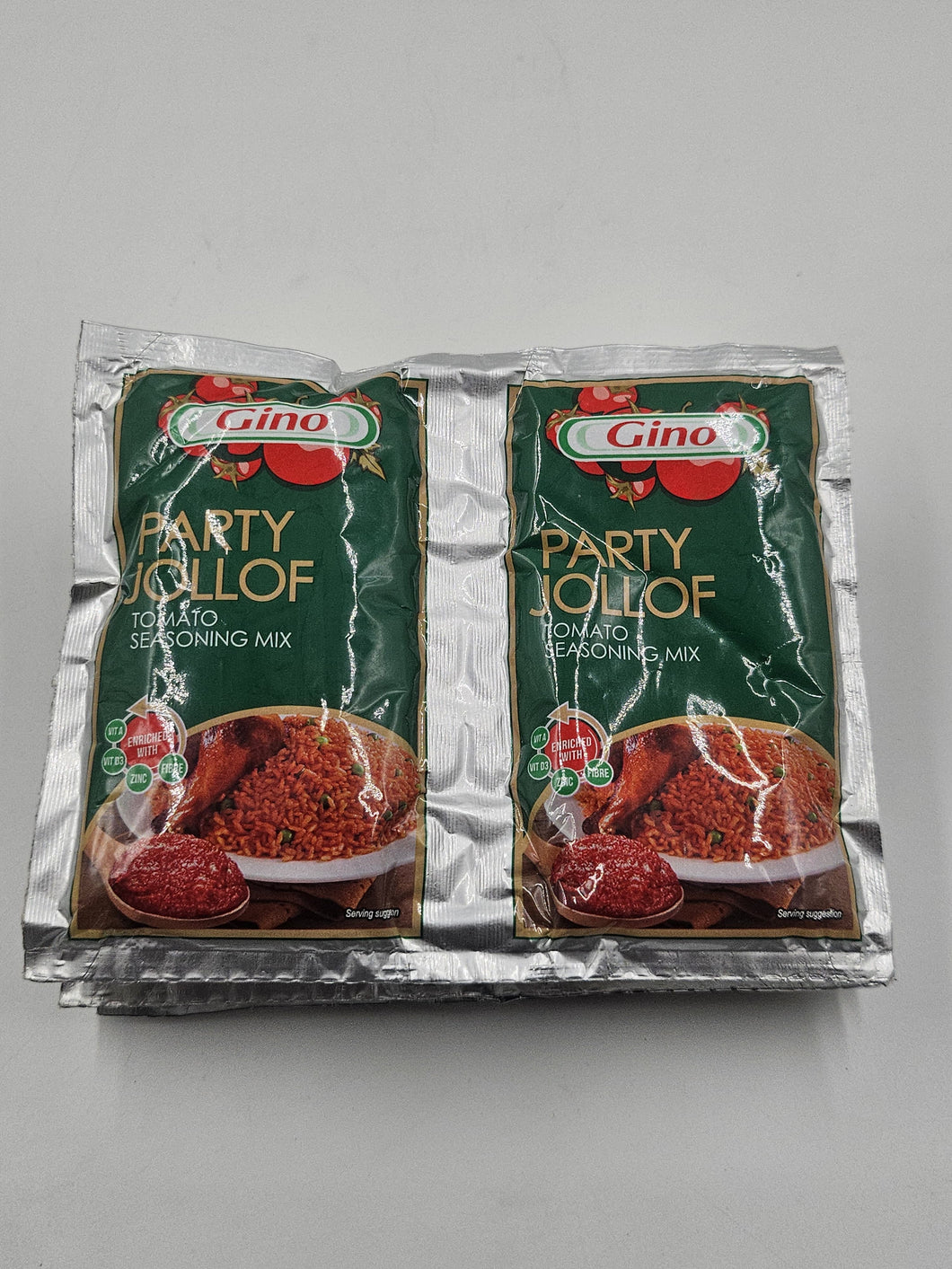 Bring the real party-style jollof flavor home with Gino Party Jollof Seasoning Mix. This rich tomato seasoning blend gives your rice that authentic smoky taste, vibrant color, and bold aroma Nigerians love. Perfect for quick meals or large family pots, it delivers consistent, delicious results every time.